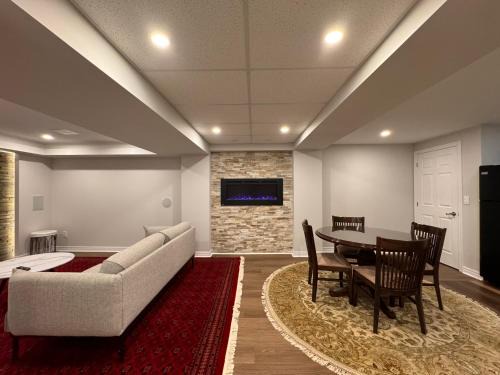 Spacious Bottom-Floor 2BR Suite offers accommodations in Innisfil, 19 miles from Simcoe County Museum and 27 miles from Newmarket Theatre. With free private parking, the property is 6.9 miles from Barrie South GO Station and 9.3 miles from Sadlon Arena. With free Wifi, this 2-bedroom apartment features a flat-screen TV, a washing machine, and a fully equipped kitchenette with a microwave and toaster. Towels and bed linen are available in the apartment. There's also a seating area and a fireplace. Toronto Pearson International Airport is 52 miles from the property.