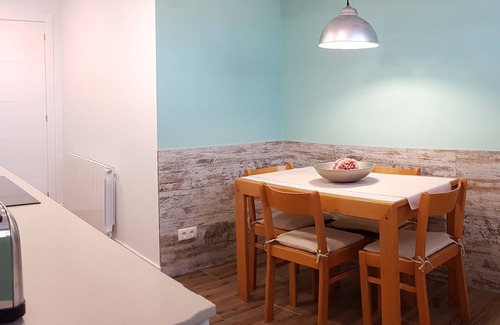 Spacious dining room with table for 6 people, Smart TV, free Wi-Fi, views of the sea and the castle of Sant Juan from the terrace, which brings great light to the spacious dining room.