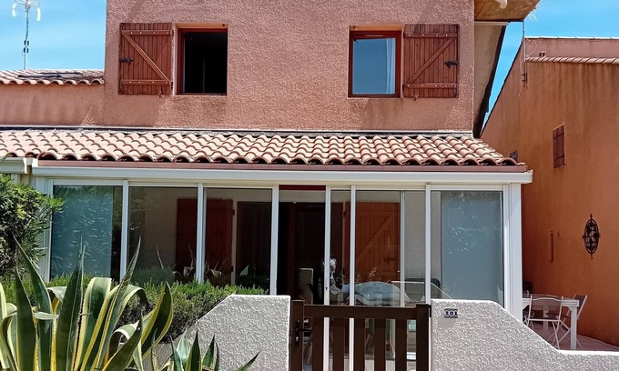 Spacious bungalow, T3, roof terrace, swimming pool, Wifi, lagoon, near beach | Cabin in Gruissan