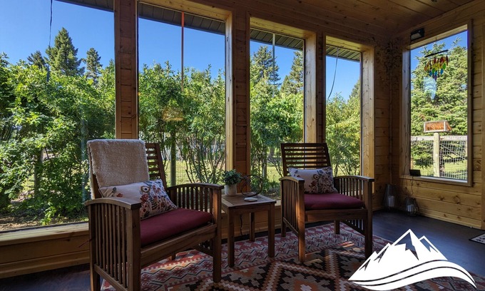 Light, bright, and open, this cabin on the banks of Seeley Creek has it all. The large kitchen is fully equipped and perfect for those who love to cook. The living room is open to both the dining area and kitchen. The beautiful sunroom just beyond the living room provides the perfect place to enjoy your morning coffee.