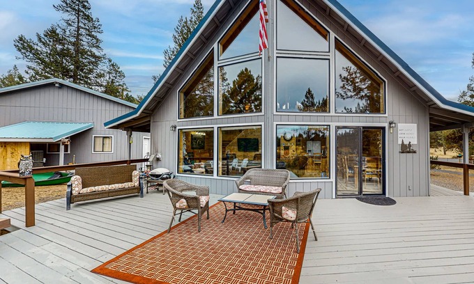 Escape to this charming riverfront house in La Pine, Oregon, where the tranquil sound of the flowing water from the Little Deschutes River sets the perfect backdrop for your getaway. This family-friendly retreat offers a plethora of amenities to ensure a comfortable and memorable stay.