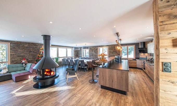 Ideal for family summer or winter fun, the chalet can accommodate up to 14 people in the exceptional setting of the Vosges. On the main level is a spacious living room of 96m².