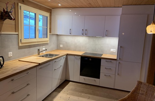 The holiday home was built in 1975 and modernized in style and preserving original details. The house is located in the beautiful Prattigau hiking area near the ski area Klosters / Davos and can accommodate 6 adults and 2 children. On the upper floor is the living area with a beautiful living room with all comfort and beautiful views all around, a separate kitchen, bathroom, children's bedroom with bunk beds and master bedroom with spacious double bed (separate mattresses) and beautiful views of the Silvretta massif. On the ground floor there are two very spacious bedrooms with double beds, a second bathroom and toilet and laundry room with washing machine, dryer, freezer and icecubes machine. The whole house has been furnished and decorated with the utmost care. The kitchen is fully equipped including dishwasher, refrigerator, freezer, oven, microwave and Nespresso machine and beautiful Bunzlau Castle dishes. The holiday home is situated in a quiet area about 50 meters above the village of Kublis on a sunny southern slope at 850 m altitude. It is 10 minutes walk to the center of the village and the (ski) bus stop and 15 minutes to the station. The garden and orchard (1000m2) offers many possibilities to relax, play and bbq (gas bbq present). The large south-facing balcony gives a wonderful view of the village below and the Silvretta massif. In the summer you will find direct connection from the house to various hiking trails including a climb to the 'Prättigauer Höhenweg' from Klosters to St. Antönien one of the most beautiful hiking areas between Prättigau and Montafon. In the winter, about 500 meters from the house, the longest alpine run of Graubunden ends the Parsenabfahrt of the ski area Klosters / Davos. By car you drive in a quarter of an hour to the parking lot of the Gotschna cabin lift in Klosters. The chalet can only be rented per week *. Rent includes bed linen and final cleaning. Tourist tax: CHF 4.50 / Person (from 12 years) per night.
