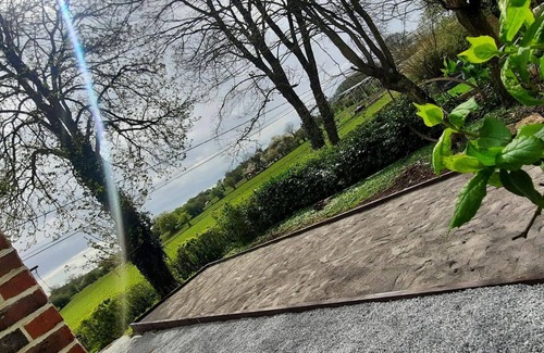 Large enclosed garden with countryside views, outdoor furniture, barbecue, and pétanque court. Ample parking in front of the cottage and garage for motorcycles and bicycles.