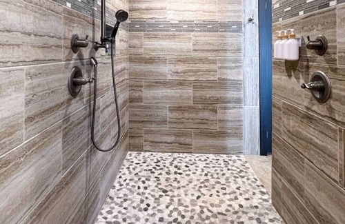 Huge shower, personal Turkish pool blankets, & fluffy cotton towels!