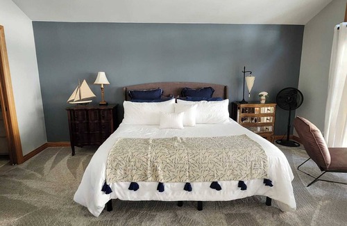 Welcome to our coastal farmhouse on spectacular Lake Huron. This pleasant retreat boasts 6 well appointed sleeping spaces, including a mix of king, queen, full, and twin bunk beds, ensuring a cozy stay for all guests. The large primary suite has incredible panoramic views of the water. The kitchen is equipped with with new appliances and the family room has ample space for playing games or enjoying a movie on the 65 inch TV. Enjoy the peaceful surroundings and unwind in the gorgeous 3-season room. Make your holiday one for the books with a stay at the Lake House Retreat.