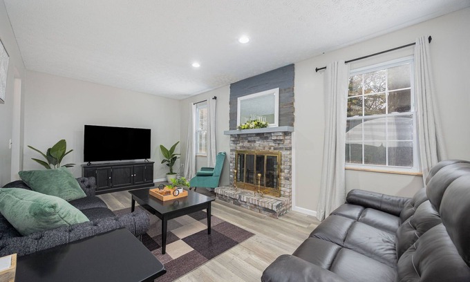 Perfect for group stays, this 4-bed Columbus home offers comfort and fun. With room for 12 guests, it features big bedrooms, a large living room, and an entertainment center full of games, ping-pong, foosball, and air hockey tables. Centrally located near top attractions like Ohio State University, Columbus Zoo, and German Village. Enjoy fast Wi-Fi, in-unit laundry, and a spacious backyard for relaxing. Ideal for family reunions or friends’ weekends. Book now for a memorable stay in Columbus!