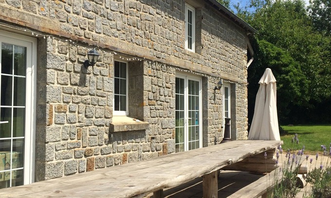 Secluded 4.5 acre, countryside setting with private parking and garden, owners live on site to rear/apart, and are available for assistance throughout your holiday. Only 5kms to amenities at Mortain with open air pool (summer) Karting, plenty to see and do in the surrounding areas. Large living accommodation, Smart TV, Wifi, 7ft pool table, Bluetooth sound bar, large master bedroom en suite, (2 double beds, can either be separated or used together for super queen size, & bunkbeds and cot, ) family bathroom, Single bedroom, twin bedroom, triple bedroom (double and single beds). Highchairs and 2 cots available. Fully equipped kitchen, gas hob x2 , electric oven x1, gas oven x1, , microwave, coffee machine (senseo), washing machine. All bedlinen & towels supplied. See our friendly menagerie. Direct access onto walking and cycle track to rear of property.