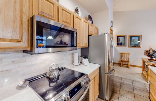 Perched on the shores of the Blue River, your 1,300 square foot 2BR/2BA end-unit condo features high ceilings and a gas fireplace. Take in water views on the balcony, or open the window in the expansive master suite to enjoy the sounds of the river. End days with a relaxing soak in the shared hot tub.