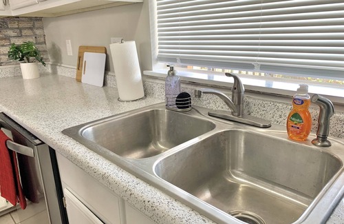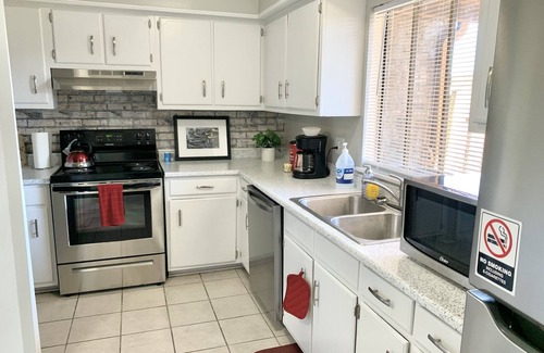 The fully furnished condo is stocked with your everyday needs such as pots and pans, coffee maker plates, bowls, cups, cooking utensils, silverware, washer and dryer, plush hotel graded towels, and complimentary travel size toiletries (lotion, shampoo, conditioner, & body soap). Guests will love the privacy of having a 2-car garage, outside sitting, comfortable king & queen size beds, ROKU stick to enjoy your favorite shows, and so much more!