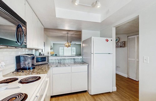 This beautifully updated 2-bedroom, 2-bath condo is located on the second floor (accessible by stairwell) and features an open, modern layout with plenty of seating for your whole group. The fully equipped kitchen includes an oven, electric stovetop, microwave, dishwasher, coffee maker, toaster, and all the essentials for preparing meals at home.