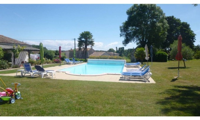Les cottages des Rimaudières vous accueillent dans leur ferme charentaise rénovée située dans un environnement calme et agréable. Ce spacieux gîte est entièrement équipé (accès WIFI compris) avec terrasse privative donnant sur un vaste jardin et une très grande piscine chauffée.