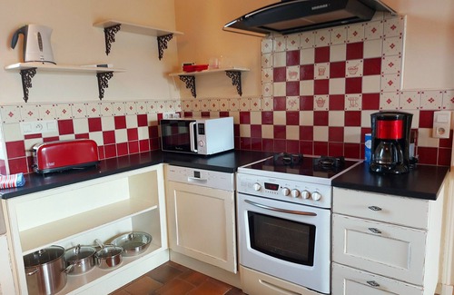 Stay from 3 nights: entry 5 [hidden] - departure 10 [hidden] Your accommodation - Access by a few steps - LEVEL 0: 30m² living room with sofas, 140cm TV, 1 office - 33m² kitchen and dining area with fireplace, refrigerator, freezer, 4-burner gas hob and oven, microwave, dishwasher, classic coffee maker, Italian coffee maker and Senseo pod coffee maker, toaster, kettle - washing machine and sink area - board games room with table and sink area with small fridge - games room with table football - shower room - 2 separate toilets - 1 bedroom with 1 90*200 bed and closet - 1 bedroom with 1 160*190 bed and closet. 1st floor: 1 bathroom with bathtub, shower and double sink - 1 separate toilet - 1 pink bedroom 1 bed 140*190 with cupboard - 1 orange bedroom 2 beds 90*200 with cupboard - 1 purple bedroom with 2 beds 90*200 - 1 master bedroom with 2 twin beds and 1 cot with bars.
