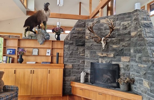 Country lodge set in a spacious garden with Mountain views. Native Bush with bush walks down to a pond.