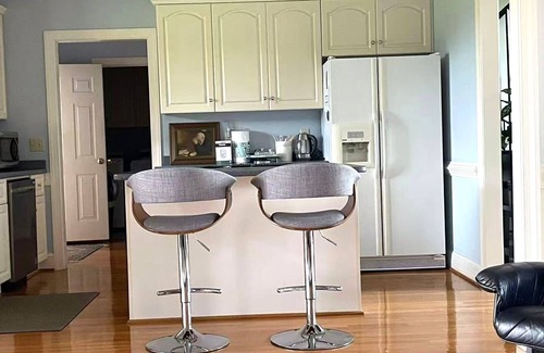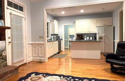 Welcome to your peaceful getaway! This charming brick home features a bright and spacious living room with cozy sofas, floral rugs, and hardwood floors, a fully equipped kitchen for home-cooked meals, and comfortable bedrooms for restful nights. Enjoy the private study with an arched window and bookshelves, or step outside to a wide green lawn with grapevines and open views. Perfect for families, friends, or remote workers, this home blends comfort, style, and tranquility for an unforgettable stay.
