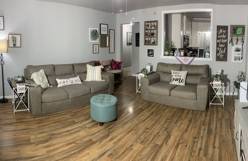 This 3 bedroom 1 bathroom home has an open floor plan with a full kitchen. A complimentary coffee bar and a full size washer and dryer are available for your convenience. Also comes with a large fenced backyard with an outdoor grill.