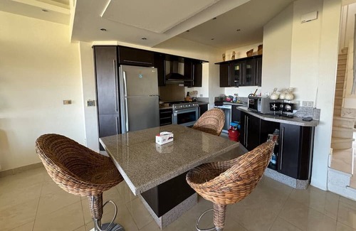 Escape to your luxurious 3-bed, 2.5-bath beach getaway in Ein Sokhna. Modern furnishings, a gourmet kitchen, and a private terrace with stunning sea views await. Relax in the plush bedrooms, including a master suite with an en-suite bath. Outside, enjoy beach access, and sun-soaked deck. Perfect for a tranquil getaway near local amenities. Book now for a beachfront retreat like no other!