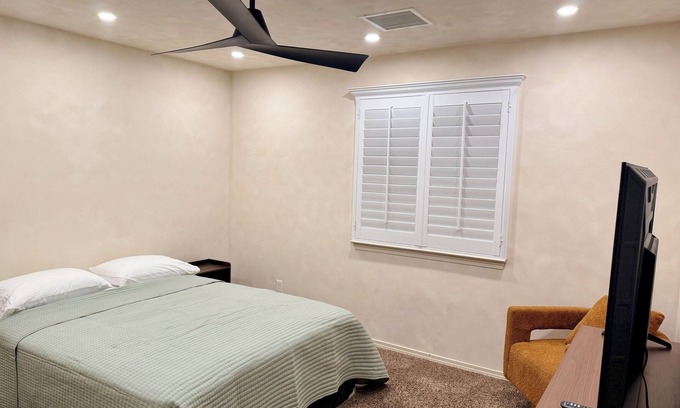 Best-rates for the Spacious Desert Escape Home starts from $169 per night with includes Child Friendly, Laundry, Air Conditioner, Security/Safety, Internet, Kitchen, Parking, TV, Bedding/Linens, Wellness Facilities, Fireplace/Heating, Barbecue/Outdoor Cooking with all other amenities. Perfect for Weddings is committed to ensuring every guest experiences a comfortable and extraordinary stay, whether planning a romantic getaway, a honeymoon, a pet-friendly stay, or celebrating with the entire wedding party.