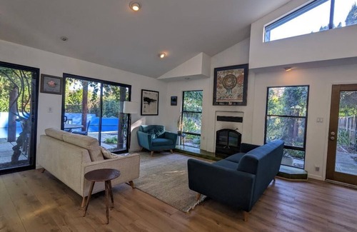 Our spacious designer house is a great fit for families looking to spend time together and to bond in a beautiful house. It features 3 bedrooms, 3 bathrooms and 2,200 sf of indoor living area. The house sits on a large lot with an UNHEATED swimming pool. Enjoy it warm in the summer or take a cold plunge in the winter....:)