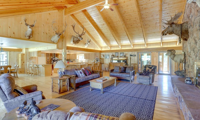 Experience the beauty of Southwestern Colorado with your family or friends from this 6-bedroom, 6.5-bath, Dolores vacation rental! This riverfront home features an open living area with a flat-screen TV, fully equipped kitchen, and multiple outdoor spaces with epic views. Enjoy coffee and breakfast on either of the decks then gather your hiking gear and explore the surrounding San Juan National Forest! Following your adventure, stop in town for quaint shopping or a bite to eat. It’s up to you!