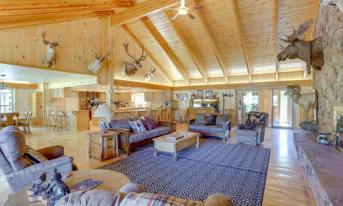 Both parking on-site and free Wifi are accessible at Spacious Dolores Vacation Rental with Decks and Views!. The vacation home consists of 6 bedrooms, 2 living rooms, a fully equipped kitchen with a dishwasher and a coffee machine, and 7 bathrooms with a bath and a hair dryer. Towels and bed linen are available in the vacation home. The property has an outdoor dining area. Cortez Municipal Airport is 32 miles from the property.