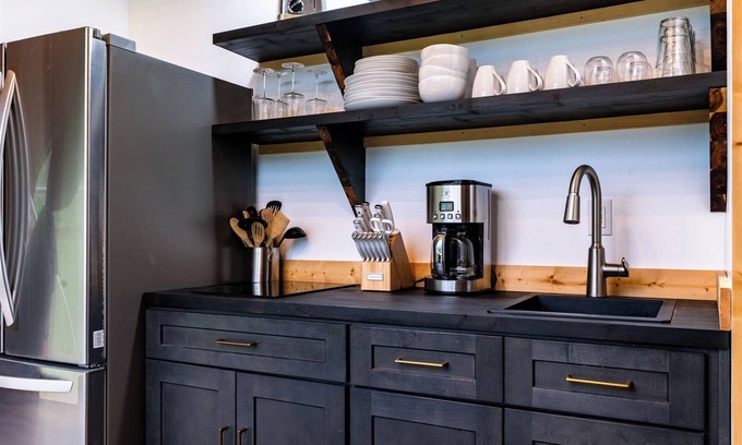 1 California King Bed, 2 Full Sized Beds in the Loft. 1 Queen Sized Sofa Bed, 1 Full Size Refrigerator, Sleep 6 to 8 and has its own incredible view. Our geodesic domes are equipped with kitchens, bathrooms, hot tubs, cozy beds.