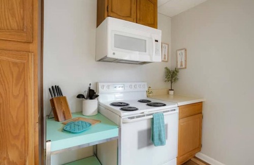 Everything you need for a cozy stay will be there! Including a full kitchen, in unit washer and dryer, a luxury queen mattress, 400 mbps WiFi, 60” TV, and a desk with a computer monitor. Obviously a coffee maker too, because coffee. :)