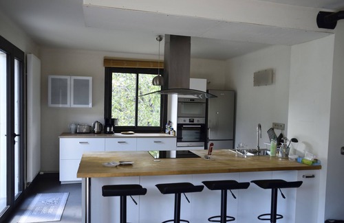Spacious apartment in independent house. Composed of a large living room (Living room + Fitted kitchen), 2 large bedrooms. 15 minutes walk from the city center, and 300m from the shuttle to Pra Loup. The environment is very calm and raised. You can benefit from the large garden of the house.