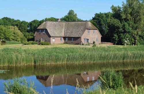 Cozy thatched-roof house with five residential units directly on the Bongsieler Canal. A large property with a fishing lake and playground equipment for children completes the offering.
