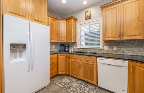 Our home has everything you need: kitchen with all the cooking essentials, two dining tables with seating for everyone, multiple sitting areas, cozy gas fireplace and an outdoor gas grill.