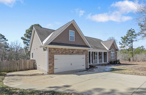 The lovely family house sits on a low-traffic road in Sanford, NC, offering a peaceful retreat, perfect for families and leisure guests.
