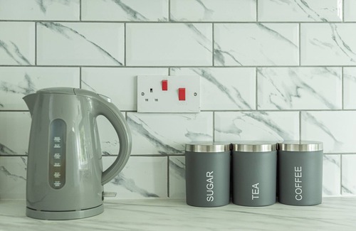 The Newly installed kitchen provides a great space for cooking , with modern appliances and all the utensils and cookware you'll need during your stay. There is also a washing machine for your laundry needs.