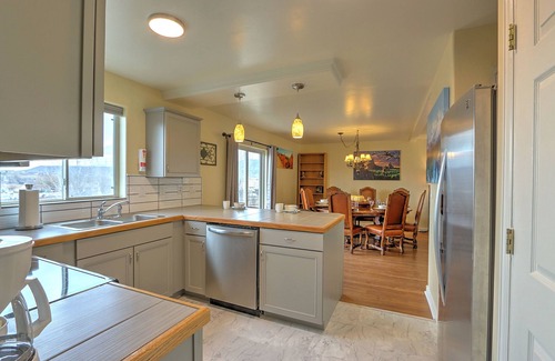 Roundtable is a two level home featuring a large living room with an oversized sectional sofa, a flat screen TV, an electric fireplace, and a recently upgraded kitchen perfectly equipped to prepare delicious meals. The large family dining area is the perfect space to gather together after an epic day of adventuring!