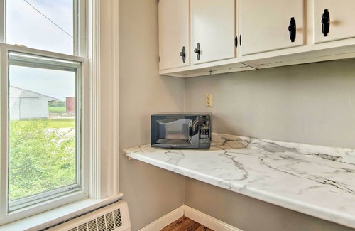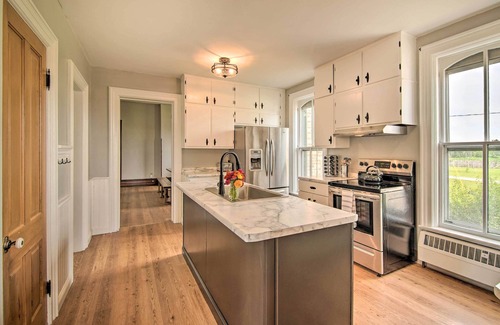 Stunning original woodwork, vintage light fixtures, and high ceilings await at this unique farmhouse! The 5-bedroom, 2-bathroom vacation rental has plenty of room for your whole crew. Enjoy a meal at the large farmhouse table or soak in the tranquility from the front porch. Start your morning with a drink from the coffee bar, then explore the walking trails throughout the 200-acre property. Venture out to the nearby Rock River or Murwin Park to enjoy canoeing, kayaking, and other adventure!