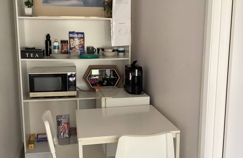 Front Guest suite has a spacious room with king size bed, added bed is single. fold away bed ( if 3 number of guest in reservation ) walk-in wardrobe, ensuite, kitchenette and a private entrance. It is located in front of the big park with playground and BBQ area, short distance to Western Sydney University, MacArthur Square Shopping Centre, local cafes, shops and cinemas.