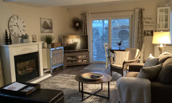 Cozy suite with private patio and full kitchen . The kitchen has full sized appliances and large enough for long stays . You will love the extra space to spread out. The unit also has washer and dryer and new shower in bathroom. The living room has lovely gas fireplace for the cooler evenings in winter. The location is a 15 walk to town where there are many restaurants and pubs to enjoy. The space has everything you need for extended stays to visit family or a longer vacation. The area is close to two beautiful beaches for walks and great for kayaking and paddle boards. Good discounts for monthly stays to enjoy Comox and the Mild weather!