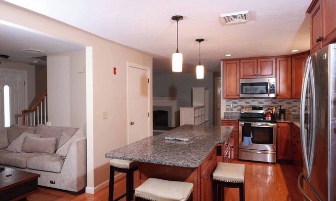 Bring the whole family to this lovely villa with lots of free parking and multiple comfy King Beds. This Villa seats on 1 Acre in a really residential and quiet neighborhood in Charlton MA. The property boasts of a spacious backyard with a private play ground for kids and a private pool with a large deck. It's less than 10 minutes away from the Treehouse brewery. The Heritage Country Club golf course is about 10 minutes from the Villa. There are several lakes within 20 minutes from the Villa.