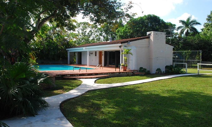Stay in our large, 1 bed/1 bath guest house located on our 4-acre ranch in heart of South Miami! 1,100 sq. ft. home includes large pool steps from the front door, full kitchen, Cable and WiFi on a working mango grove. Fully equipped home is minutes from South Miami, Coconut Grove, South Beach, Brickell and the Florida Keys!! Perfect location for getaway with all the comforts of home!! Enjoy authentic living in the heart of Miami for less. INSTANT BOOK NOW!