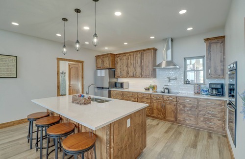 Treat your loved ones to a memorable Arkansas retreat at this 3-bedroom, 3-bath Harrison vacation rental! This luxe home features 5 Smart TVs with cable, a fully stocked kitchen, and an awesome outdoor space to relax in following your well-spent days. Get outside and canoe along the Buffalo National River, hike to Hemmed-In Hollow Falls, or explore Table Rock State Park! When night falls, unwind with your favorite drink next to the fire pit or enjoy a friendly game of air hockey. It's up to you!