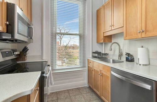 This spacious 1 bd/ 1 bath offers Wifi, work space, cozy seating & a fully equipped kitchen. In serene E. Walnut Hills, you'll experience the tranquility of nature not far from the vibrant energy of Downtown Cincinnati.