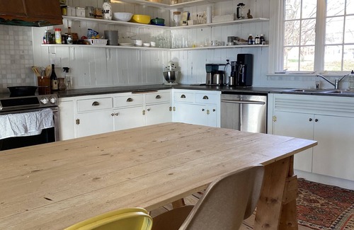 This is an vintage home sitting in the middle of the woods and shares space with nature. While we strive to keep the space free of friendly insects, there is a chance you may encounter them indoors.