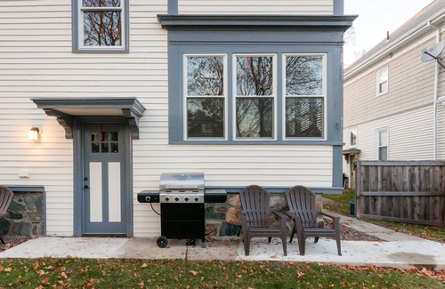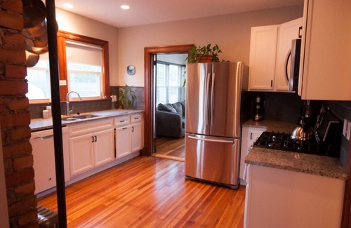 It is a spacious 2 bedroom, 1 bathroom first floor apartment completely renovated with a historic feel of a New England home but with a lot of modern upgrades. There is one queen size bed in the master bedroom, two twin beds the second bedroom, queen size pull-out sofa in the living room, a very comfortable queen size futon in the sunroom and we also have a queen size air mattress available. The sunroom can be used as a sitting room or breakfast nook as well as a private bedroom. A full size dinning room to host family get together. Old red birch and fir flooring throughout.
