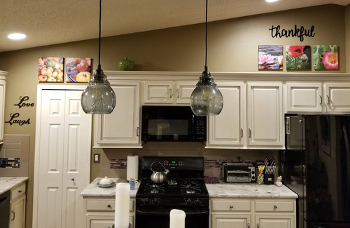 There are 3000 sq. feet of comfortable, clean living space including a fully equipped, recently remodeled kitchen. There is a living room, dining room, den, bathroom and master suite upstairs and downstairs a rec room with pool table, sun room with TV and 3 bedrooms and a bath. All bathrooms are recently remodeled as well.
