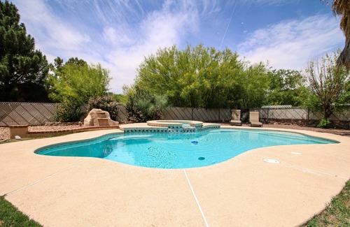 Spacious Home w/Heated Pool is located in El Paso. Spacious Home w/Heated Pool provides accommodation, featuring Wellness Facilities, Fireplace/Heating, Pet Friendly, among other amenities. This House features Wellness Facilities, Fireplace/Heating, Pet Friendly, to make your stay a comfortable one.