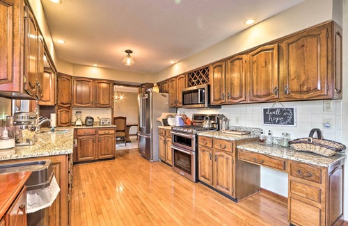 Your next Hallsville escape awaits at this fantastic home in the Golden Acres Farm! Featuring a spacious backyard with a pond and multiple living spaces, this 4-bedroom, 3-bathroom vacation rental offers a perfect balance of space and closeness, giving everyone the option to spread out or come together to unwind during your family retreat. Sip fine wines at local vineyards, soak up the sun in Finger Lakes State Park, and explore the University of Missouri campus with ease.
