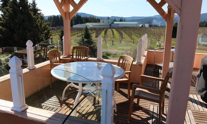 Escape to the serene countryside of Dallas, Oregon, where this charming aparthotel is nestled in the heart of a picturesque vineyard overlooking the stunning Willamette Valley. Relax by the tranquil Koi pond, unwind on the deck with a glass of local wine, or gather around the outdoor BBQ for a memorable evening under the stars. Each room boasts a private bath for ultimate comfort and convenience, while the well-stocked kitchen provides everything you need to whip up delicious meals during your stay.