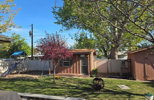 Get ready to relax in this 3-bedroom two bathroom house in Emmett. This beautiful property features 1 king bed, 2 queen beds, 1 crib, 1 twin bed, and 1 child bed, making it perfect for families or groups of friends. With amenities like AC, a washer and dryer, beautiful backyard, plenty of parking, and WiFi, guests will have everything they need for a fantastic stay. The 2 bathrooms include a jetted bathtub for ultimate relaxation. Our place is equipped for both long or short stays to make your vacation one to remember.