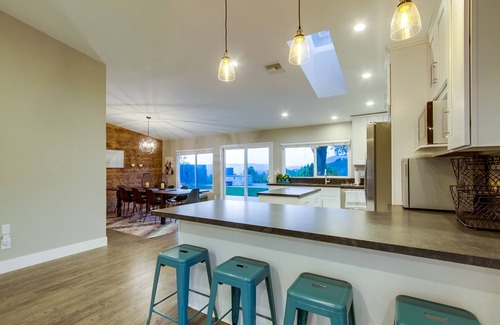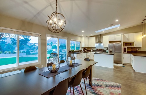 This beautifully appointed home is located in a quiet neighborhood. It sits on the edge of a canyon with mountain views from the backyard & is central to all San Diego attractions - 5 min to hiking in Mission Trails Regional Park, 10 min to SDCCU Stadium, 15 min to beaches, Zoo, Sea World, 20 min to downtown and 35 min to Legoland. But should you chose to stay in to relax there's plenty to enjoy - a Bocce Ball, 8-person hot tub, BBQ & gas fire pit.