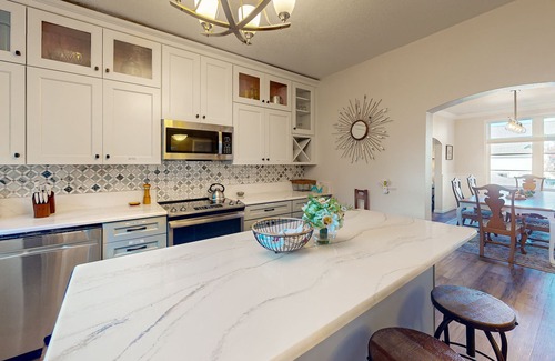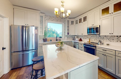 The main-floor family room features a variety of comfortable seating options while the upstairs living area sets the scene for home entertainment with a smart TV and board games. The recently remodeled kitchen boasts updated cabinets, beautiful counters, and an impressive suite of stainless steel appliances that are sure to inspire delicious home cooking. Free WiFi and a private washer/dryer round out the home essentials.