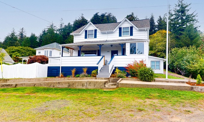 This spacious river-view retreat is ready to welcome you to the Southern Oregon Coast. Nestled just under two miles from the town of Reedsport, this family-friendly home offers an ideal base camp close to Unpqua River activities, scenic hikes, epic beaches, and dune recreation. The private hot tub provides a soothing spot to rest and recuperate between adventures. An open-air deck and gas grill let you make the most of sunshine and blue skies, while the covered porch is ideal for watching the raindrops fall.